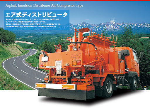 アスファルトディストリビュータともいい、略してデスピと呼ぶこともある。アスファルト乳剤を路面に散布する専用の車両。 |